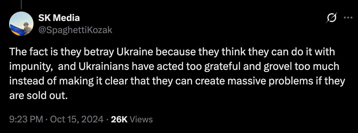 No matter how delusional his screed may appear, Maxim’s sentiment is one of many anti-Western narratives developing within Ukraine. The immense scale of Ukrainian losses, both in personnel and infrastructure, has the potential to motivate decades of anger and potential violence.