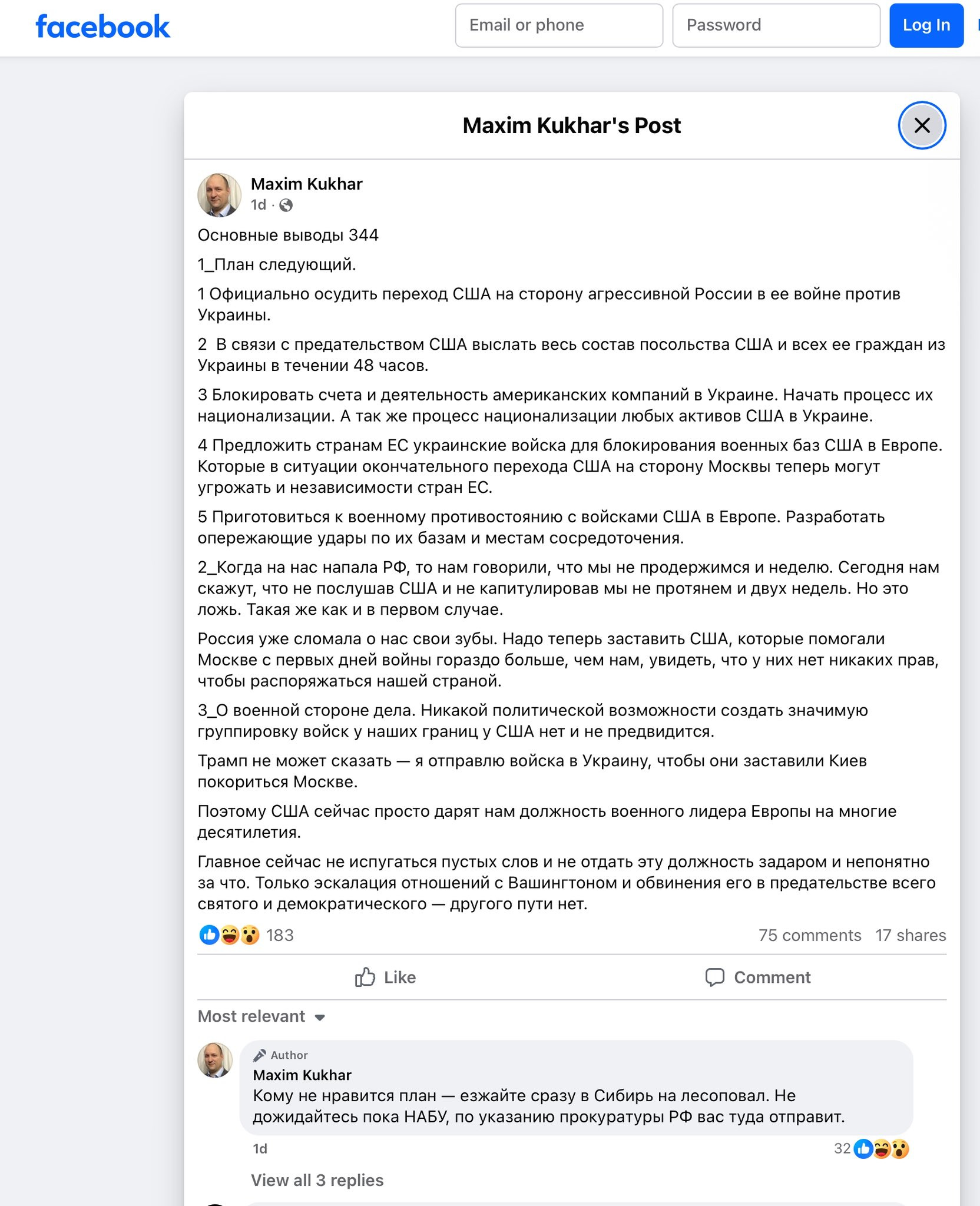 Last week, Ukrainian journalist Maksim Kukhar posted this on Facebook: