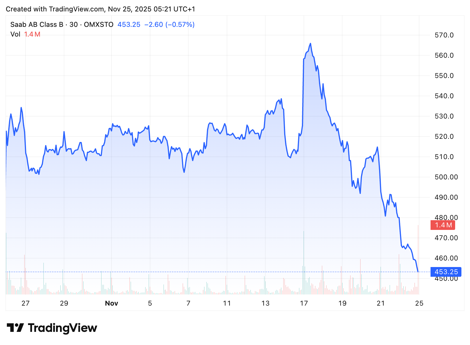 Saab posted a sharp initial 7.8% gain as the letter of intent was announced, but that gain has now been erased, with a 15% loss month over month, as its share price declined precipitously with the announcement of renewed peace negotiations. This is unfortunate news for Saab, which has faced a long string of setbacks in Gripen sales. Without the Ukraine deal becoming a reality, the future financial success of the platform is uncertain. The Swedes are currently lobbying the Canadian Air Force to acquire the Gripen E.